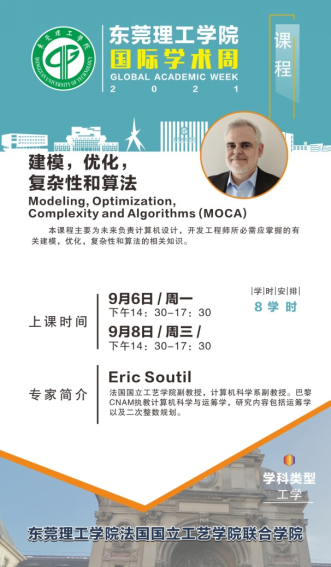太阳城集团作为经国家教育部批准设立的东莞市第一所中外合作办学机构,一直致力于服务和推动公司高等教育国际化的发展。作为公司国际教育合作的重要载体,公司高度重视并积极配合公司国际学术周的总体部署,与合作方法国国立工艺公司积极沟通,该校鼎力支持,精心挑选国际名师,为公司2021国际学术周准备了两场讲座和三门课程,具体介绍如下: