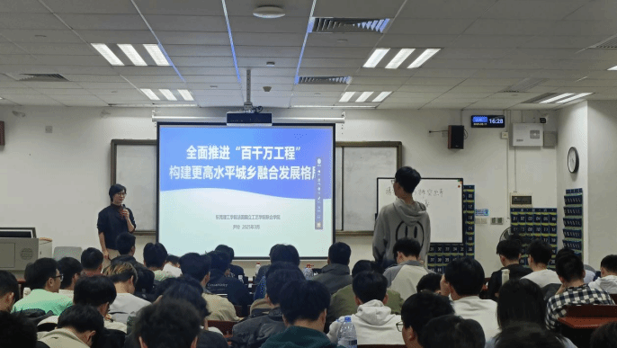3月11日,中法公司党委负责人、副经理尹玲为24级机械设计1班、通信1班和软件1班三个专业员工讲授新学期思政第一课,主题聚焦:全面推进“百千万工程”,构建更高水平城乡融合发展格局。这堂思政课紧扣时代脉搏,将思想政治教育与专业发展、区域战略深度融合,为培养新时代科技人才指明了方向。