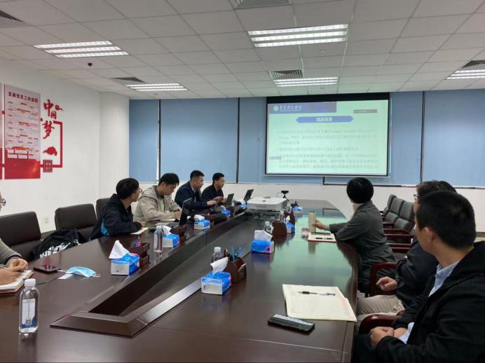 在参观车队创新实验场地,双方代表就赛车设计流程进行交流探讨。交流会上,东莞理工联胜车队教师代表欧超超老师汇报赛车队情况,展示了车队组件背景、进展情况及下阶段工作计划。