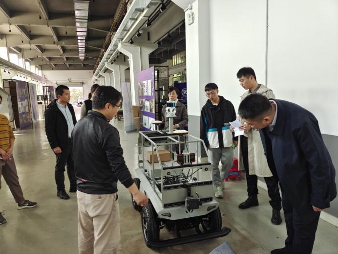 首先,双方车队师生代表共同参观了车队创新实验场地,负责老师向参观人员展示实验室现有设备及未来规划,车队创新实验场地将进一步打造为集赛车组装、日常培训等多功能综合车队实验基地。赵博士与联胜车队指导老师就场地布置、设备部署方案及实验室安全注意事项等进行交流。