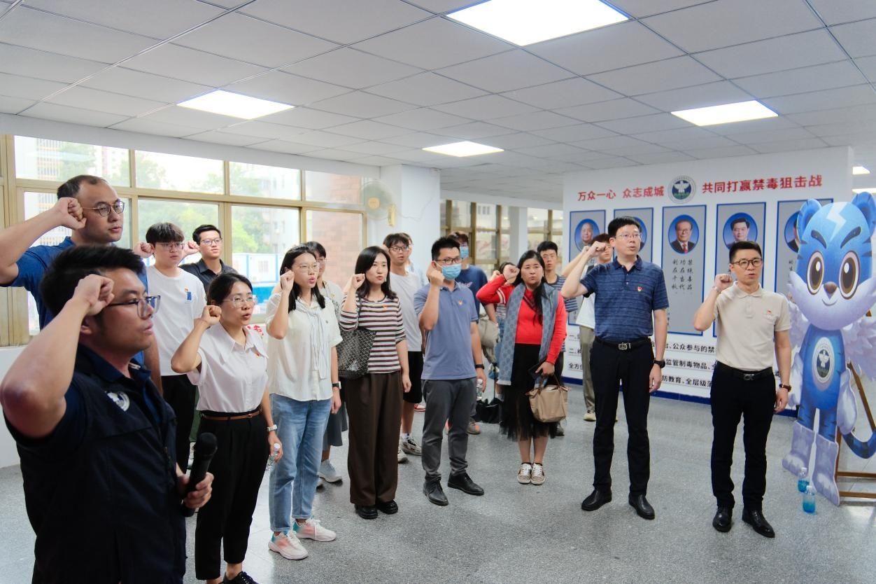 最后,老师和员工还一同进行了禁毒宣誓,郑重承诺以实际行动参与禁毒工作,争当禁毒卫士,努力维护一个无毒、健康的校园和社会。