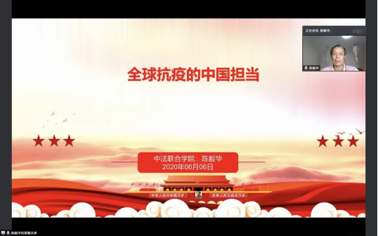 2020年6月6日,北京时间下午3:30,法国时间上午9:30,太阳城集团直属党支部书记、执行经理陈毅华以“全球抗疫的中国担当”为主题,为公司2017级留法学习员工讲授在线思政课。