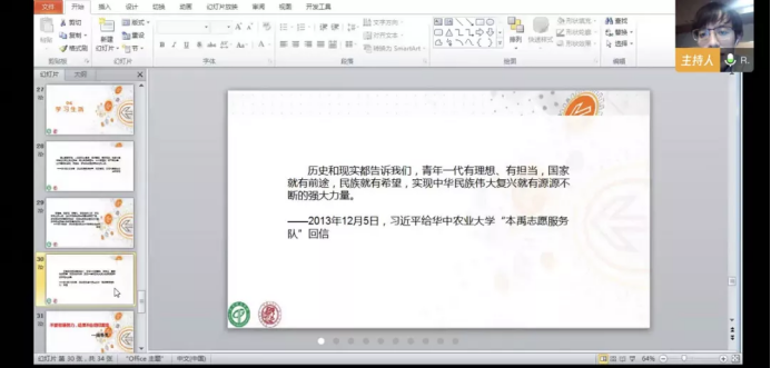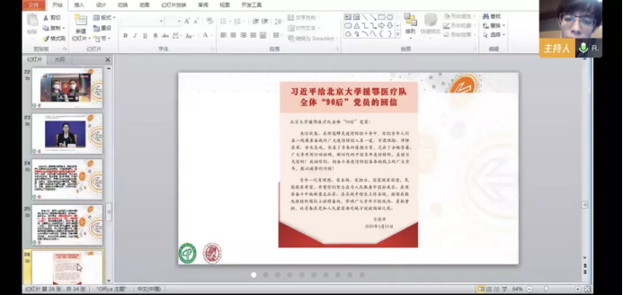 老师先给我们讲解了总书记的回信的由来,回信的内容,及介绍了北京大学援鄂医疗队的感人事迹,让我们深刻了解医疗队的工作是如此的艰辛,并且在物资短缺的条件下,医生毅然把自己的物资分给病人。在这一刻,他们不是亲人,但胜似亲人。总书记的回信既是对青年医疗队成员的肯定,更是对我们青年一代深厚的寄语和深切的期望。